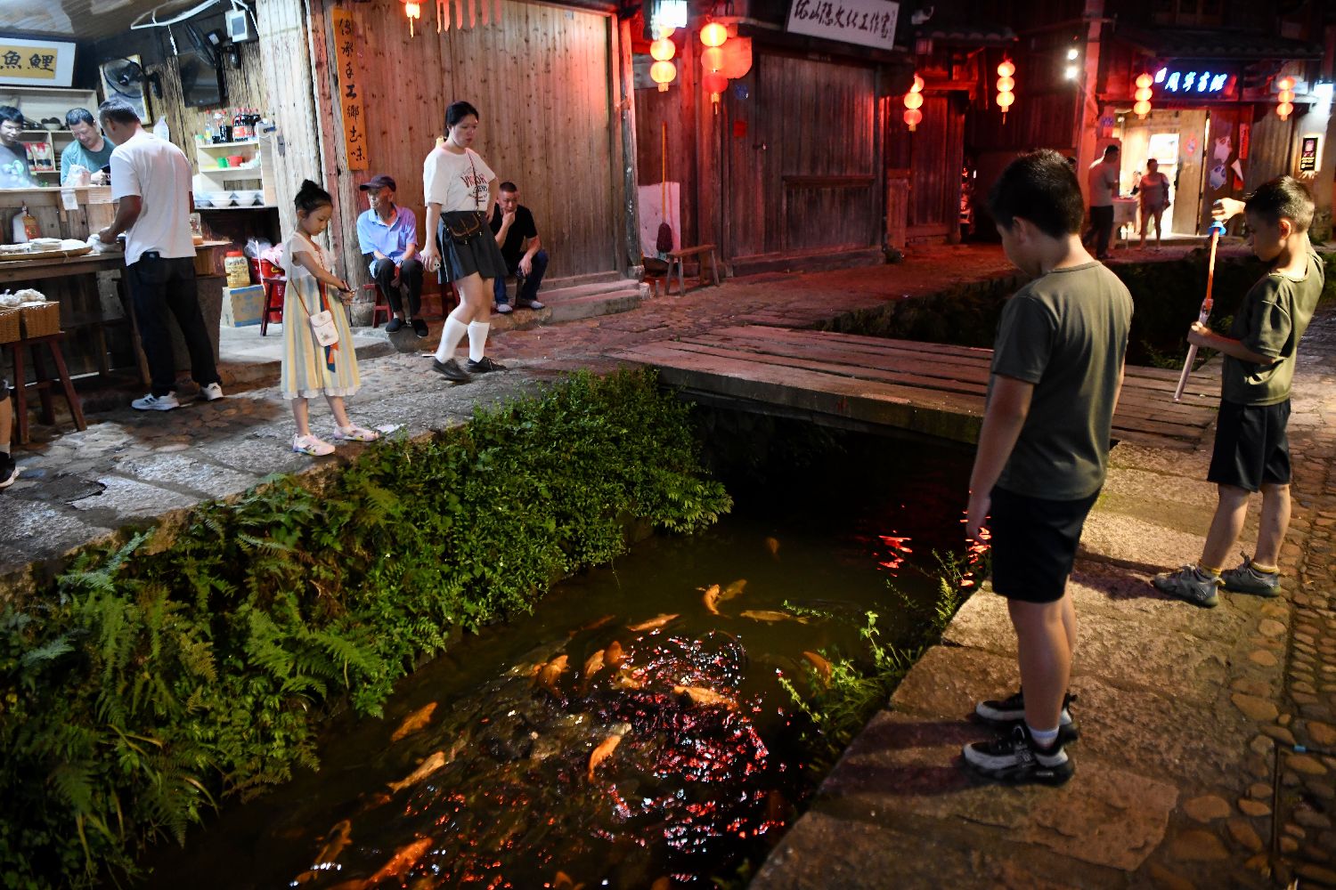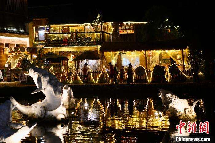 7月17日晚,游客在鲤鱼溪风景区游玩。(图片来源:中新网)