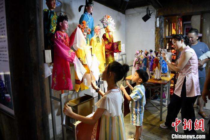 小朋友鲤鱼溪风景区体验传统杖头木偶表演。(图片来源:中新网)