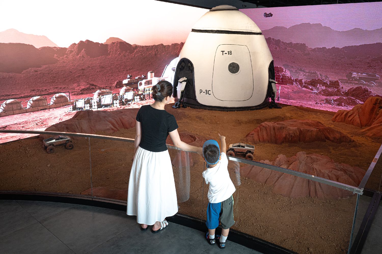 7月18日,家长陪伴孩子在“走!去建设火星”硬科幻行星科学体验展上参观。(图片来源:本文图片均据新华社)