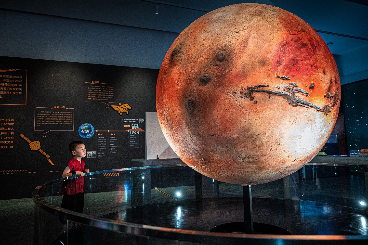 7月18日,小朋友在“走!去建设火星”硬科幻行星科学体验展上参观。