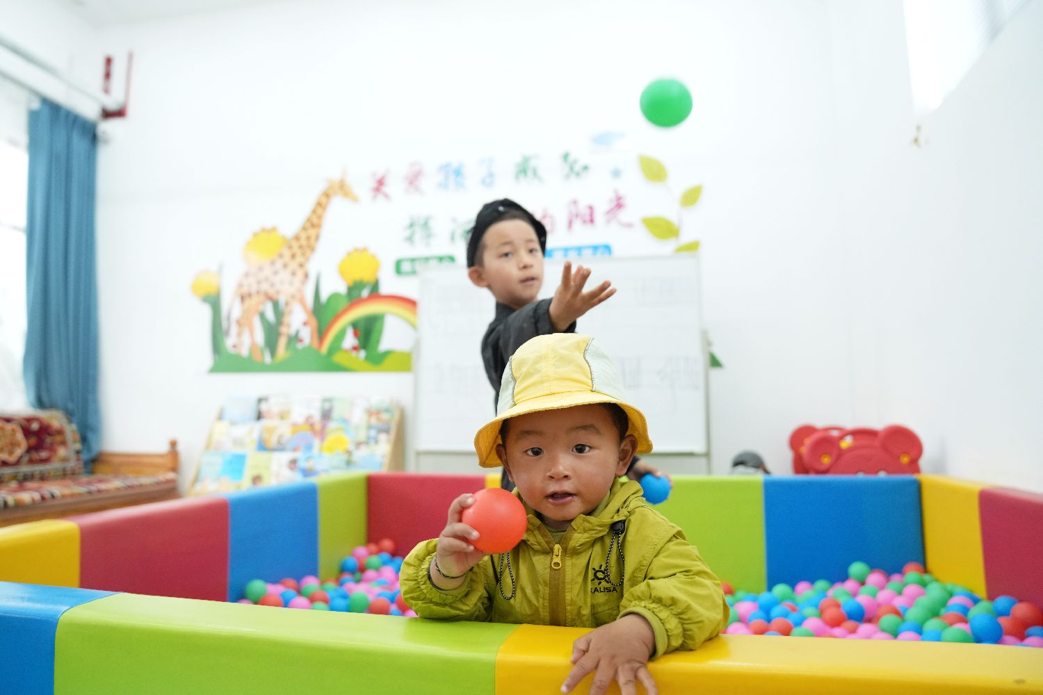 7月17日,在西藏自治区拉萨市曲水县三有村,小朋友在幸福驿站玩耍。(图片来源:中新社)