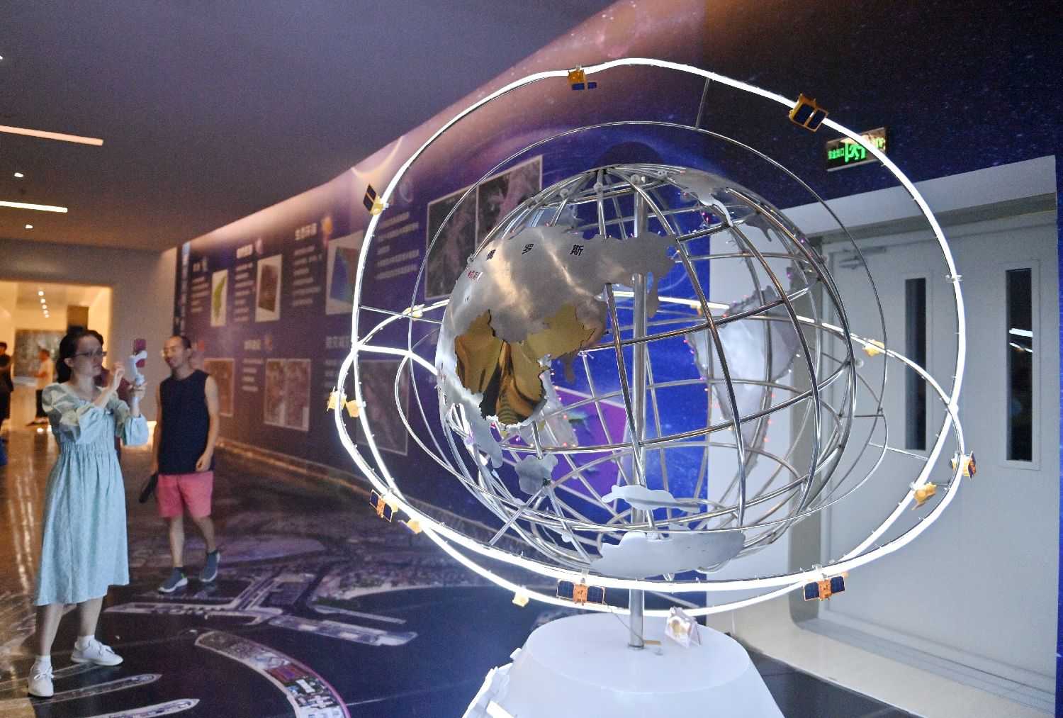 长光卫星技术股份有限公司展示的卫星行进轨道路线模型。(图片来源:中新社)