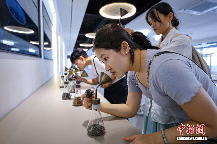 图为外籍学生体验不同的茶香。