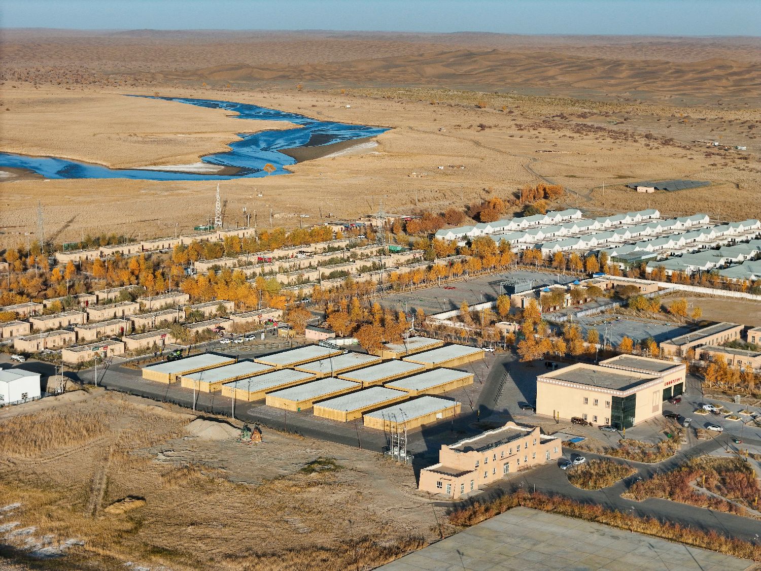 在新疆于田县塔克拉玛干沙漠腹地拍摄的一处村庄新貌。
