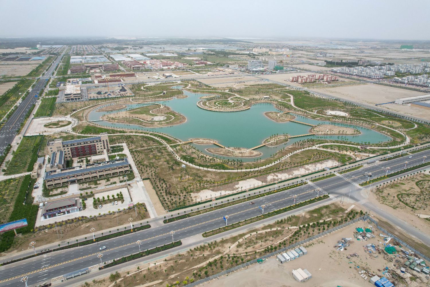 这一工程一方面可为南疆构建现代化产业体系提供“绿色”动能支撑,另一方面将有效汇集环塔里木盆地数千万千瓦的新能源电力,形成一条输送绿电的“大河”,进而通过“西电东送”通道把绿电输送至全中国。图为在新疆和田地区拍摄的和田县新城。