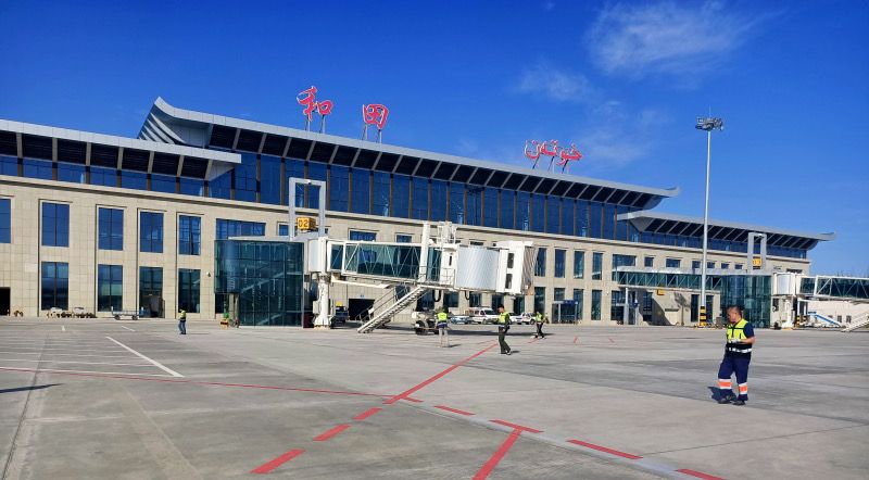 截至目前,环塔克拉玛干沙漠周缘,G314国道(乌鲁木齐至红其拉甫段)等一条条现代化公路与10余个民用机场已经织成一张网络,将这片沙海环绕其中。而新疆和若铁路的开通运营,则完成世界首条环沙漠铁路“最后一块拼图”,让上千万各族群众受益。图为2025年拍摄的新疆和田昆冈机场。