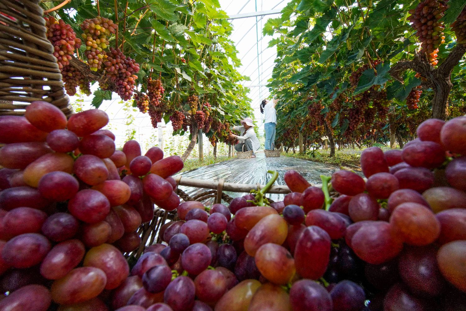 7月22日,河北省遵化市团瓢庄镇朱官屯村农民在采摘葡萄。