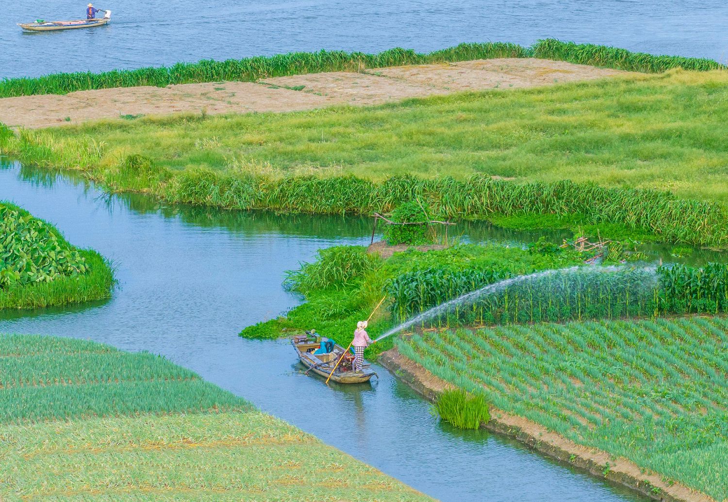 7月22日,农民在江苏省兴化市垛田街道高家荡村的田间浇水。