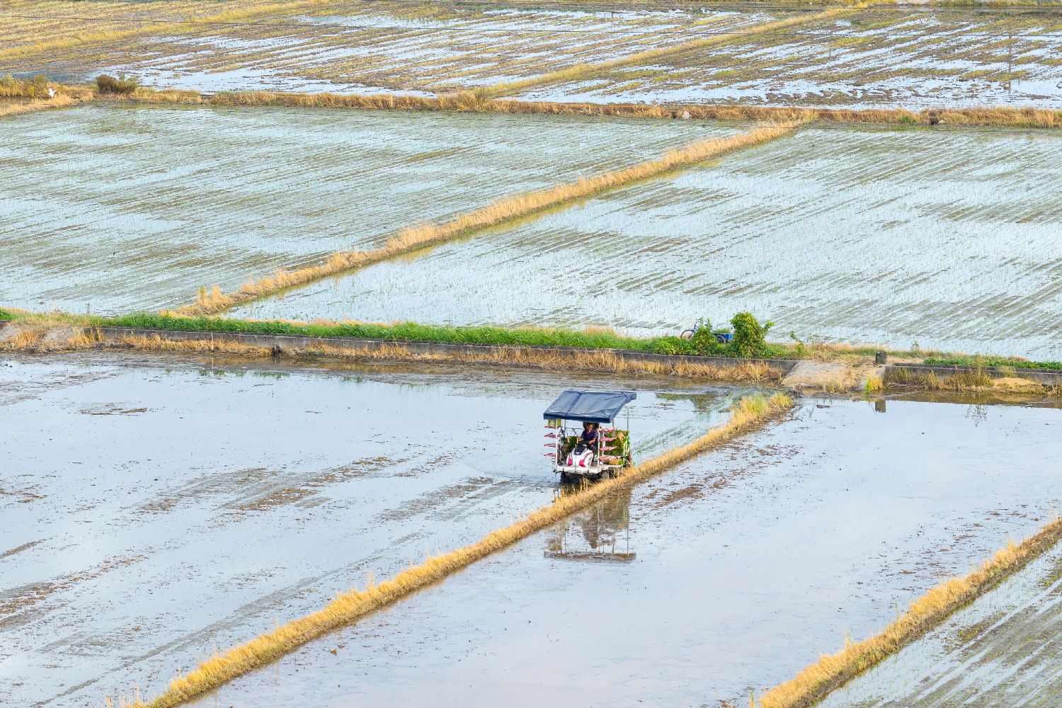 7月22日,浙江省余姚市牟山镇牟山村农民在田间驾驶插秧机插种晚稻。