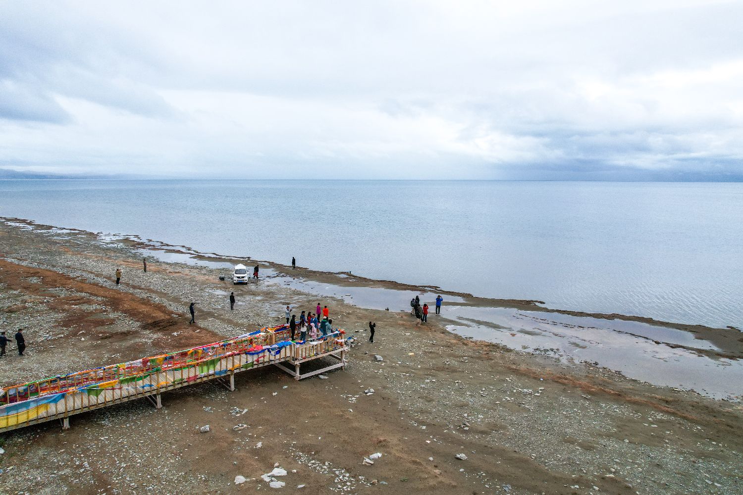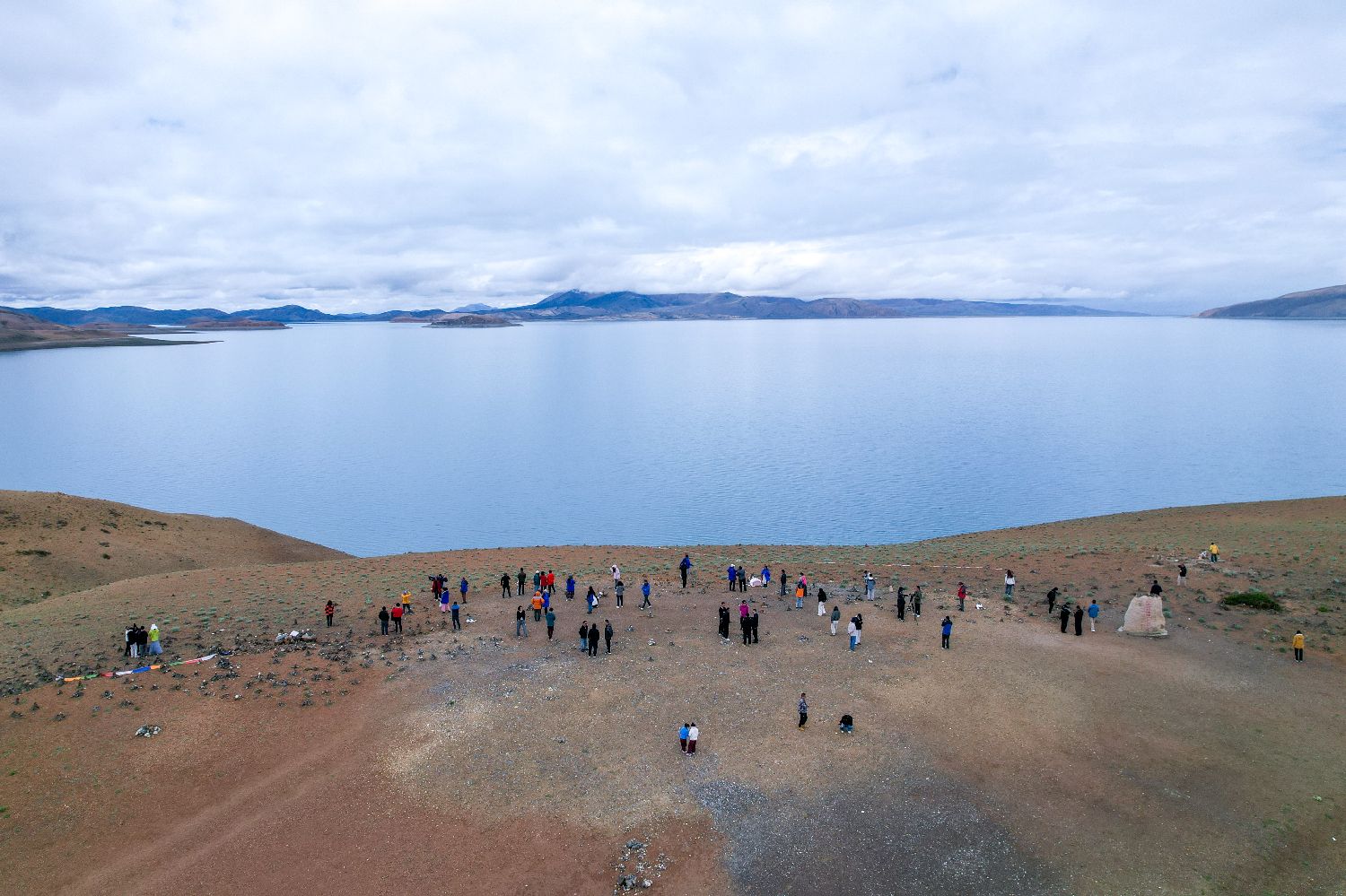 玛旁雍错与拉昂错位于西藏阿里地区普兰县境内,两湖仅有一堤之隔,却拥有不同的地理特征和咸淡水之分,因而分别被誉为“圣湖”与“鬼湖”。图为7月22日,游客游览玛旁雍错。(图片来源:中新社)