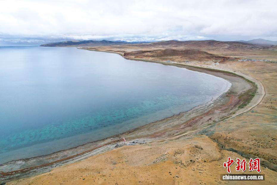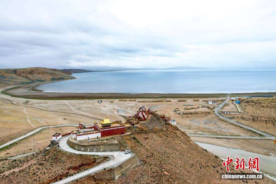 7月22日,从吉吾寺上空航拍玛旁雍错。(图片来源:中新网)