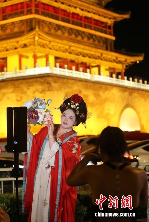 图为大唐不夜城吸引市民和各地游客纷纷打卡。