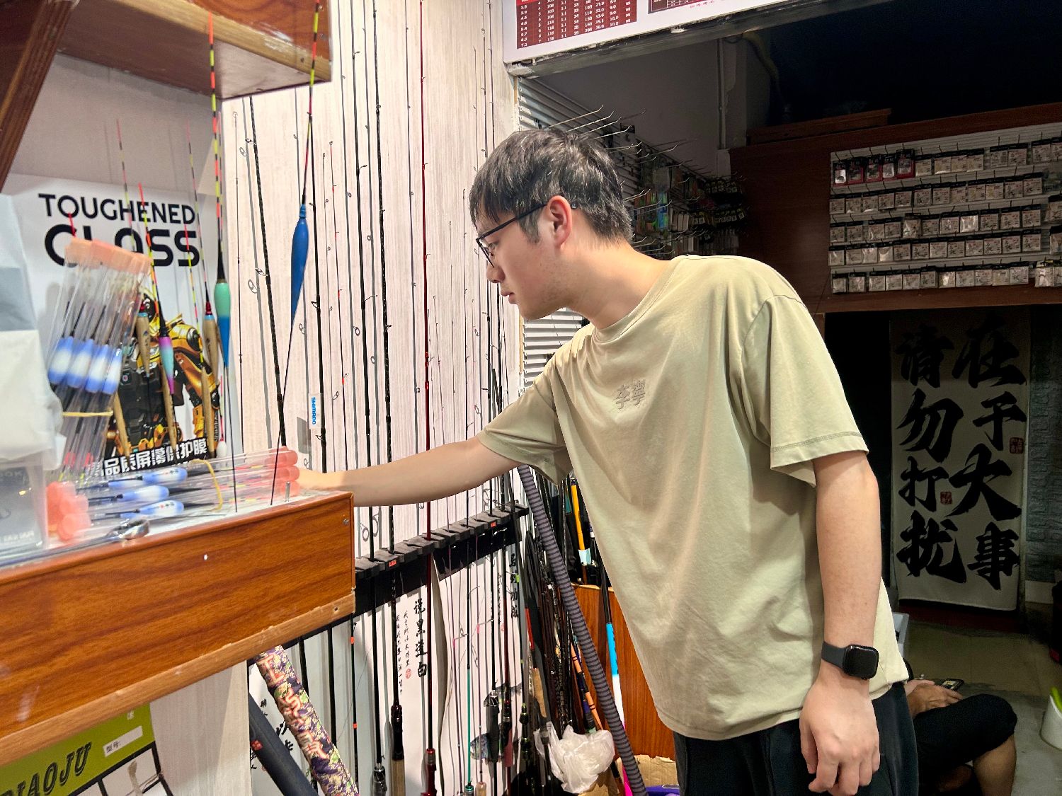 7月17日,顾客在江西省南昌市红谷滩区一渔具店内挑选渔具。(图片来源:中新社)
