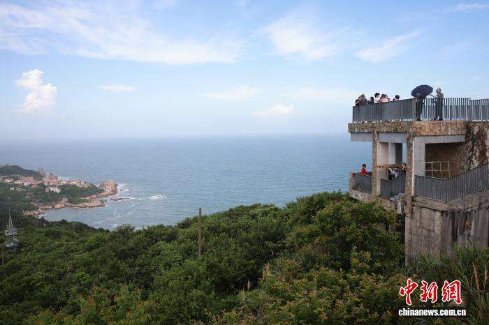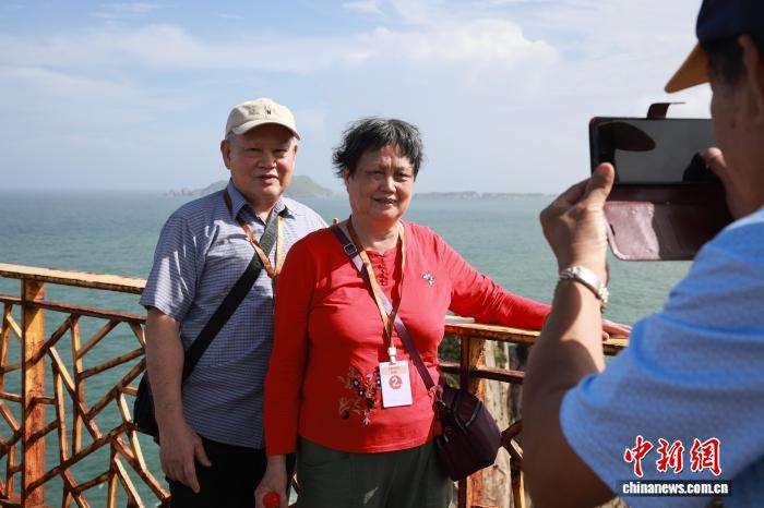 7月22日,两位台胞在甲午岩前拍照打卡。(图片来源:本文图片均来自中新网)