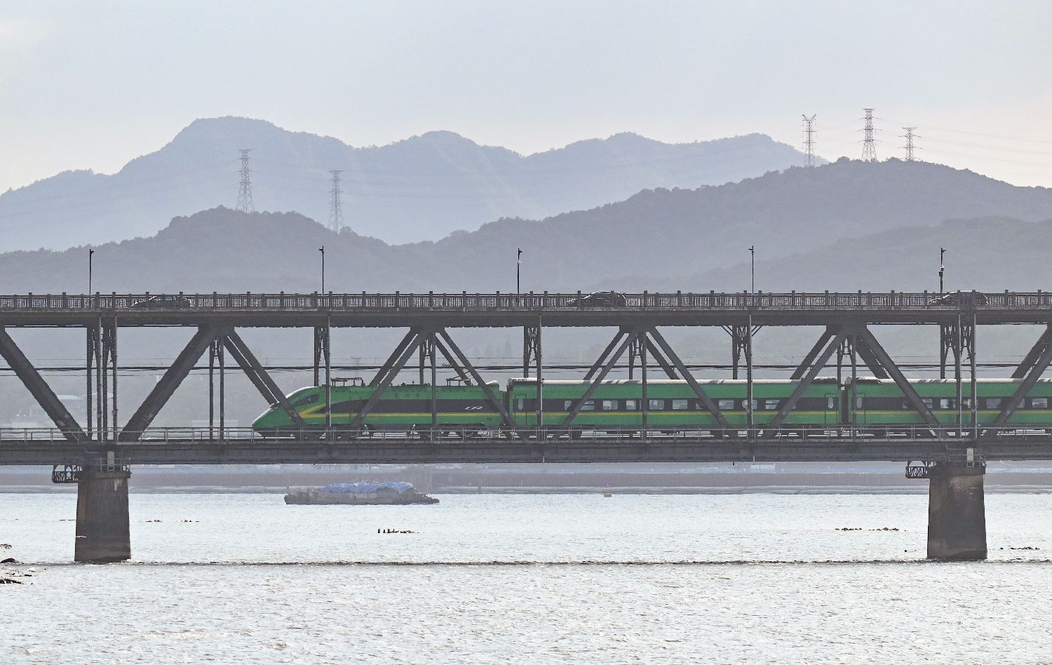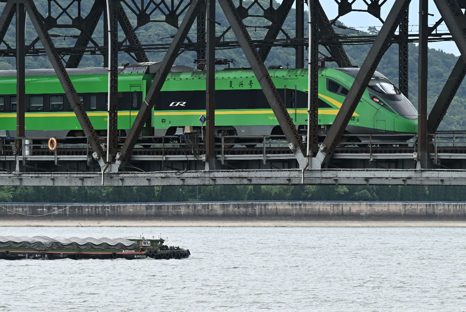 7月23日,复兴号列车行驶在钱塘江大桥上。