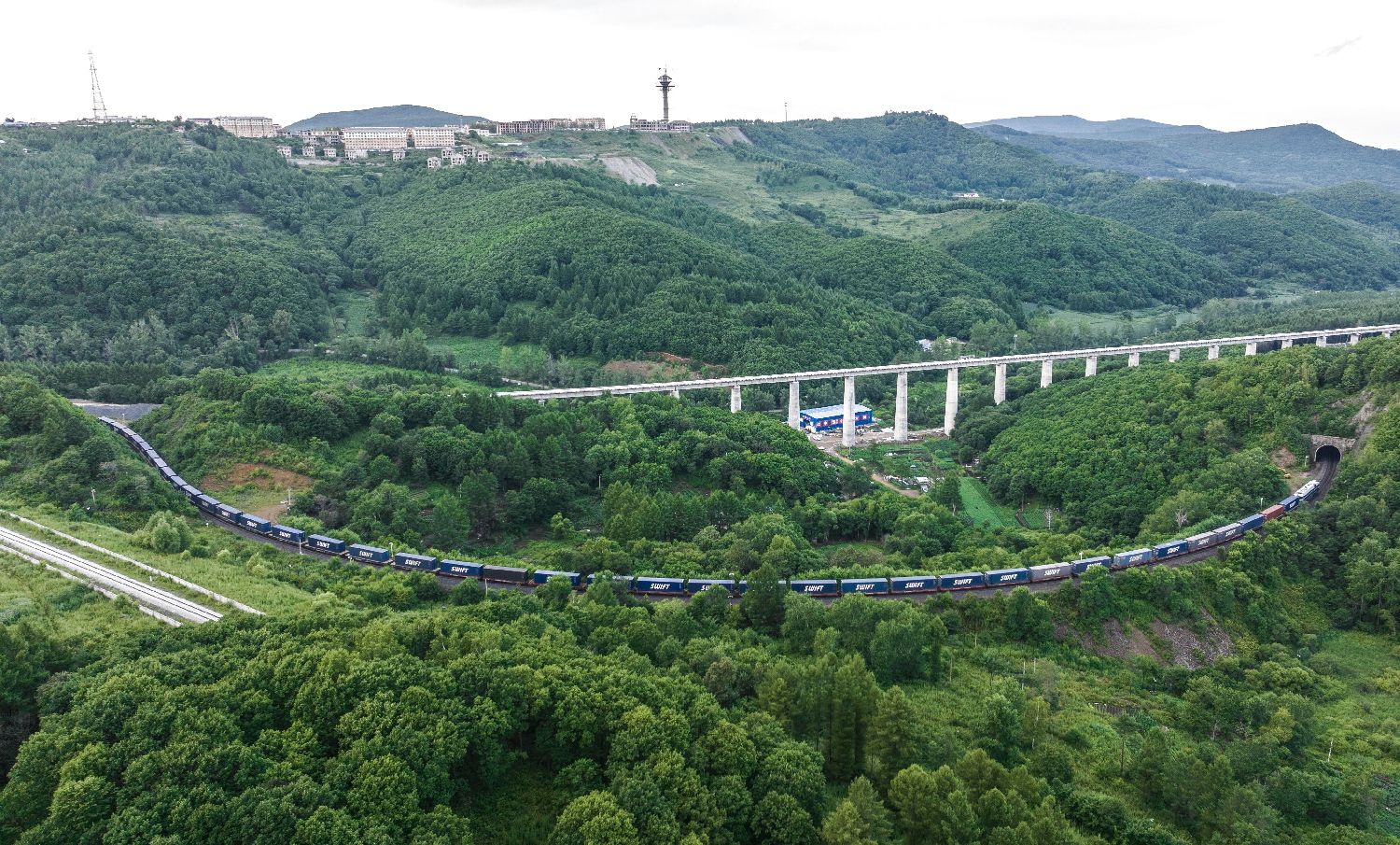 7月21日,一列满载家用电器的中欧班列驶出中国铁路哈尔滨局集团有限公司绥芬河站。