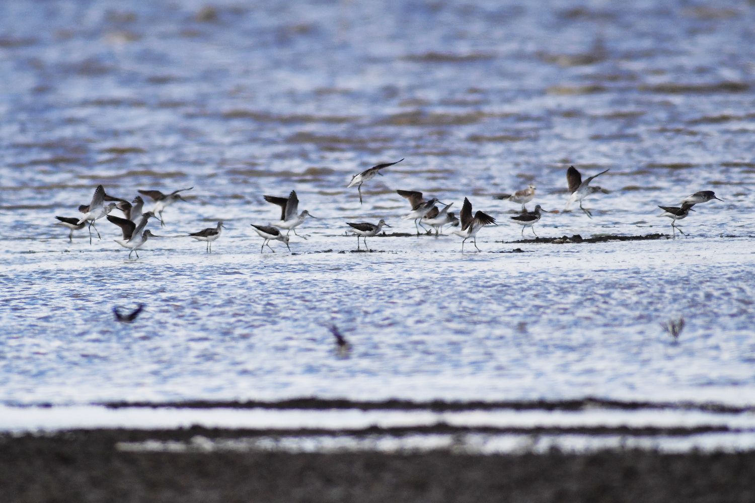 7月23日,成群青脚鹬在觅食。(图片来源:中新社)