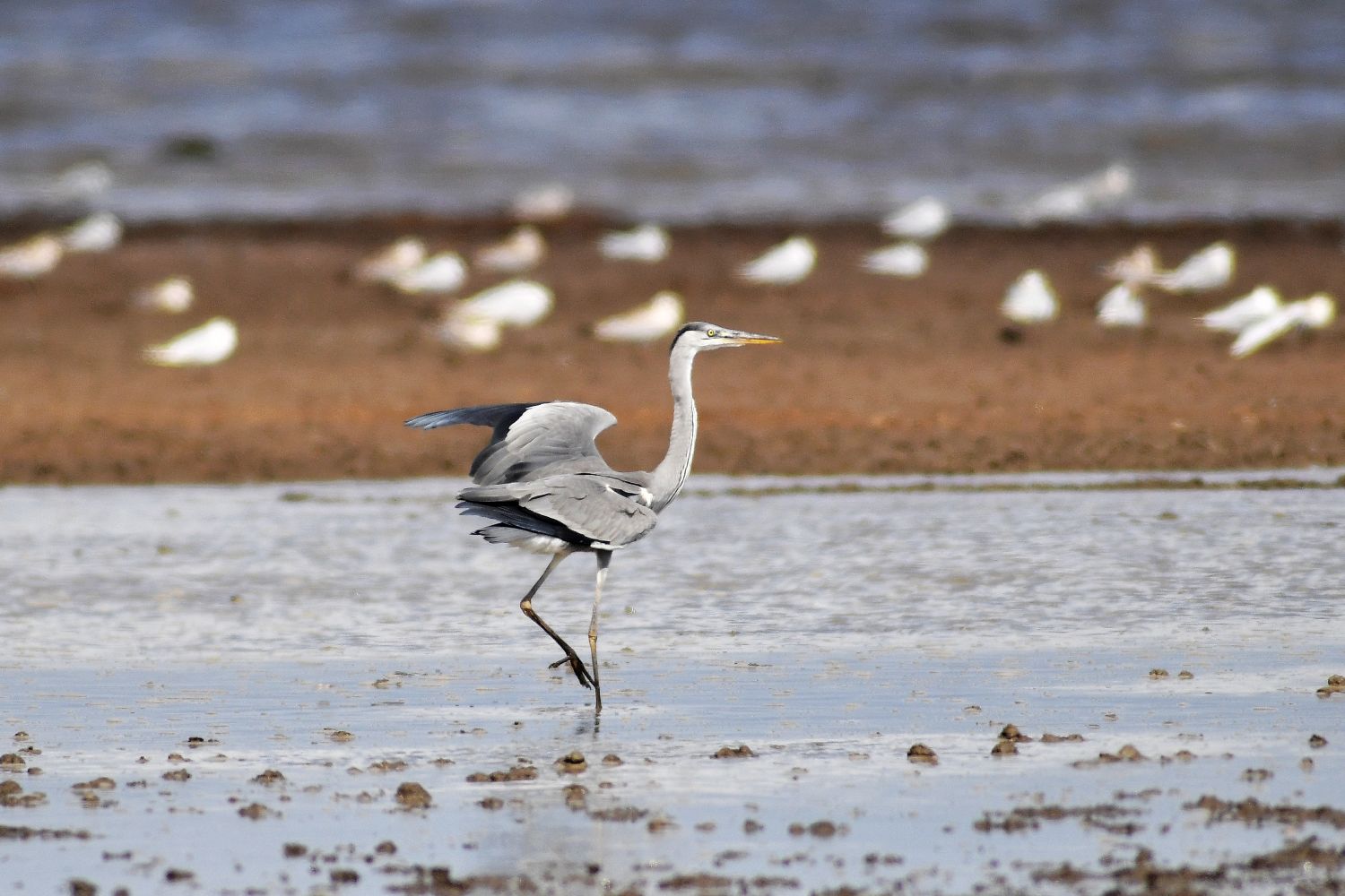 夏日时节,成群的黑嘴鸥、白鹭、青脚鹬等鸟类在青岛胶州湾国家级海洋公园(红岛段)滨海湿地觅食栖息、更换夏羽,在宁静的滩涂绘就了一幅美好的生态画卷。