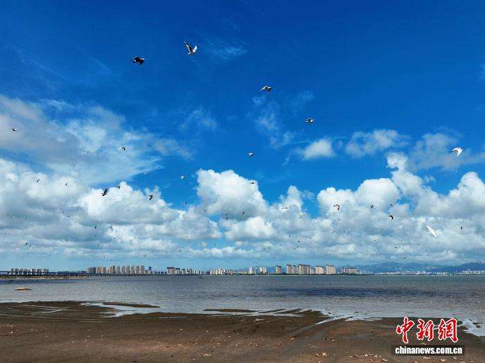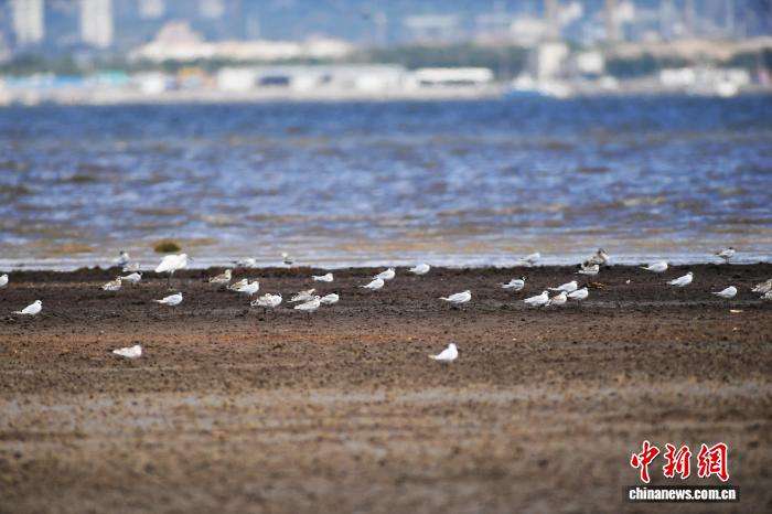 7月23日,成群黑嘴鸥在滨海湿地栖息。(图片来源:中新网)
