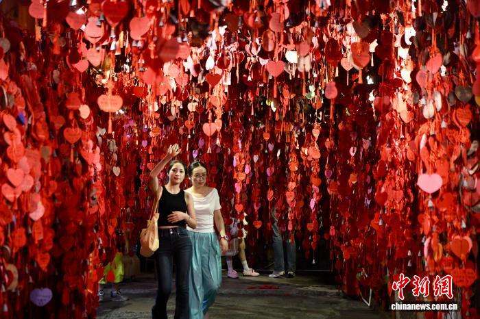 7月23日晚,游客在古香古色的西街游玩。(图片来源:中新社)