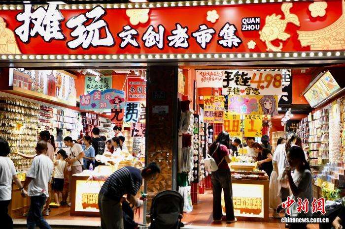 7月23日晚,游客在西街购买泉州传统纪念品。(图片来源:中新网)
