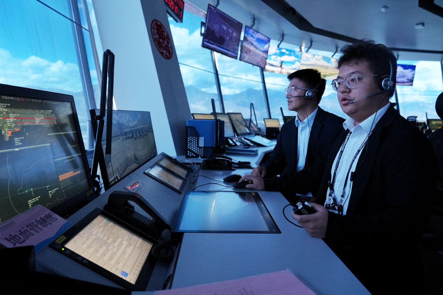 2025年是西藏自治区成立60周年,也是西藏民航通航60周年。在民航空管领域,管制员肩负指挥飞机运行、保障飞行安全等重要职责,具体分为区域管制员、塔台管制员等角色。图为7月22日拍摄的民航西藏空管中心塔台。(图片来源:本文图片均自中新社)