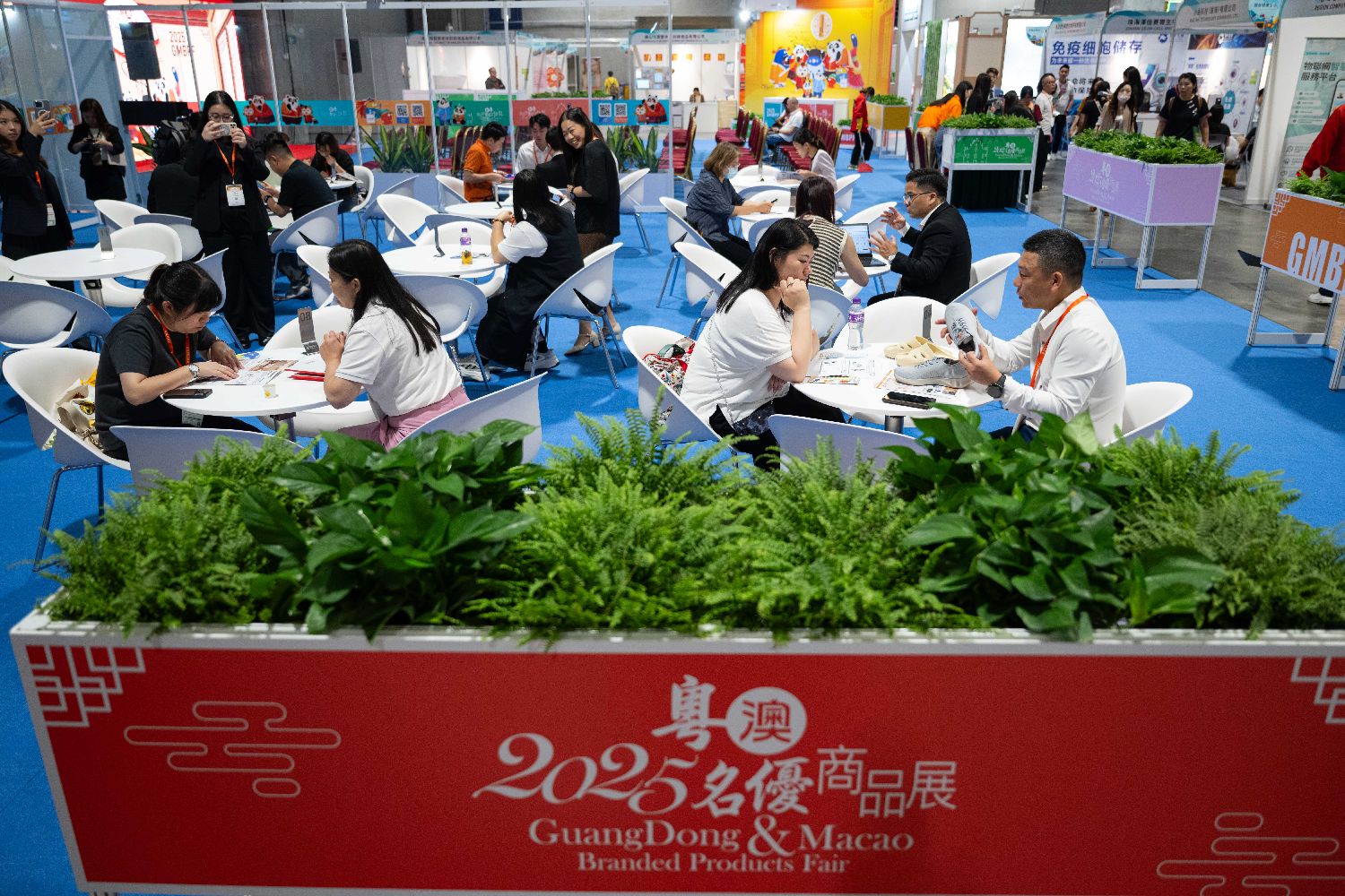展会以银发经济与国潮产业为主题,设有银发健康生活、国潮商品、广东省名优商品、澳门特色商品以及“一带一路”商品等5个展区,汇聚400多家海内外企业的5000余款产品,将持续至27日。图为7月24日,市民在2025粤澳名优商品展上参观。(图片来源:本文图片均据新华社)