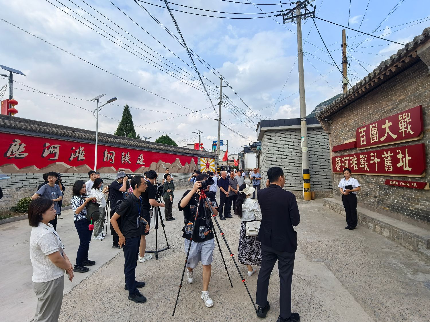 7月23日,海内外媒体记者走进磨河滩战斗旧址。(图片来源:中新社)