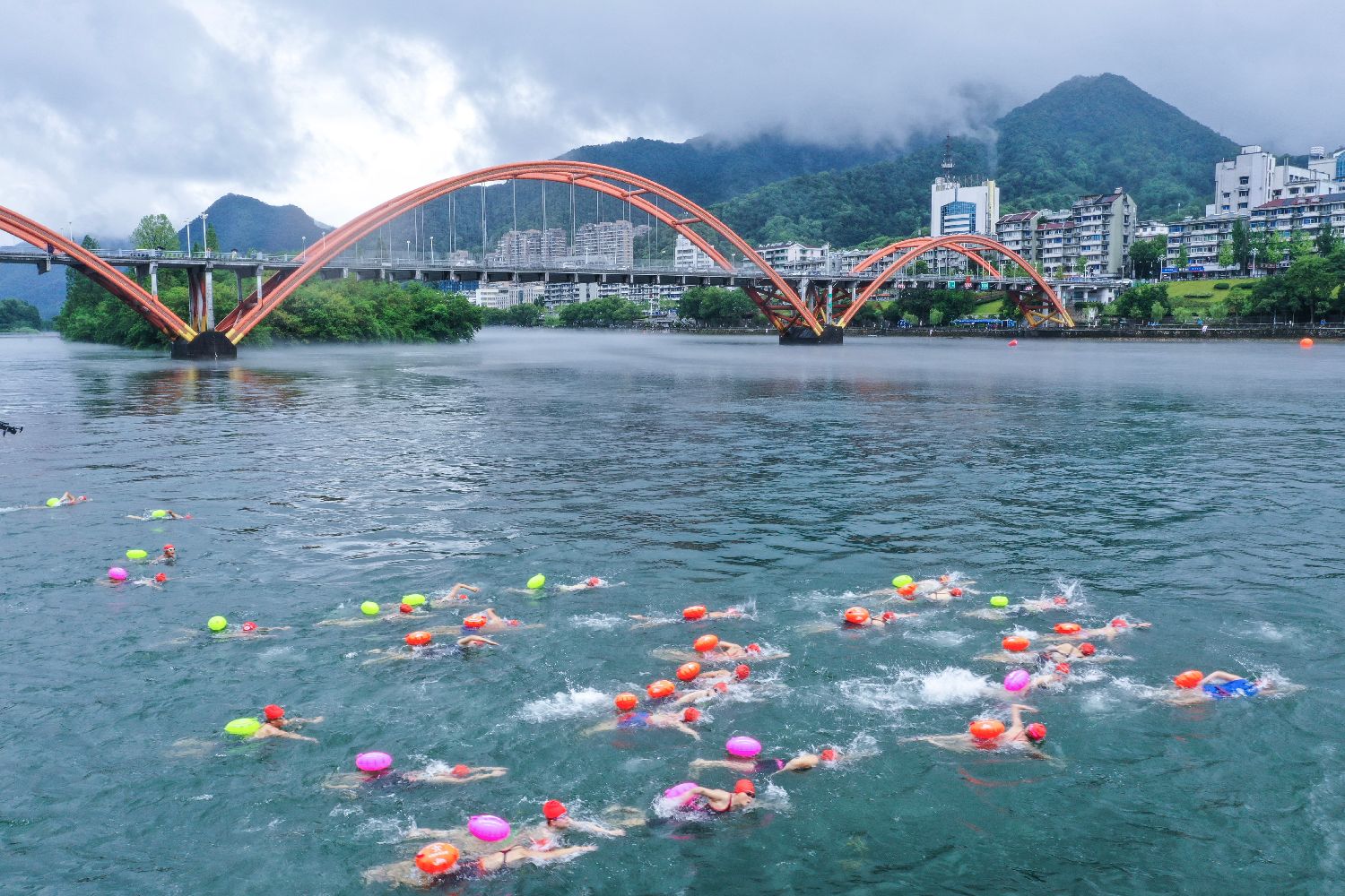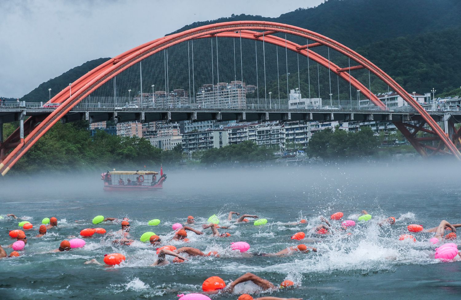 7月27日,建德17℃新安江“夏日冬泳”挑战赛在浙江省杭州建德市开赛。本次比赛设置了耐寒勇士横渡新安江团体挑战赛、耐寒勇士畅游新安江和17℃新安江“逆流勇进”桨板挑战赛三项赛事,吸引了2800余名游泳爱好者参赛。