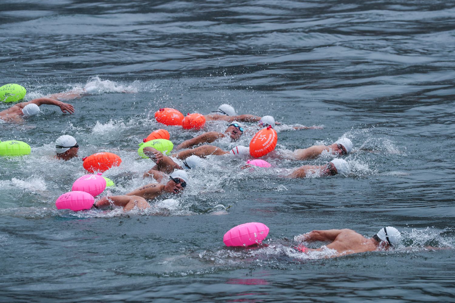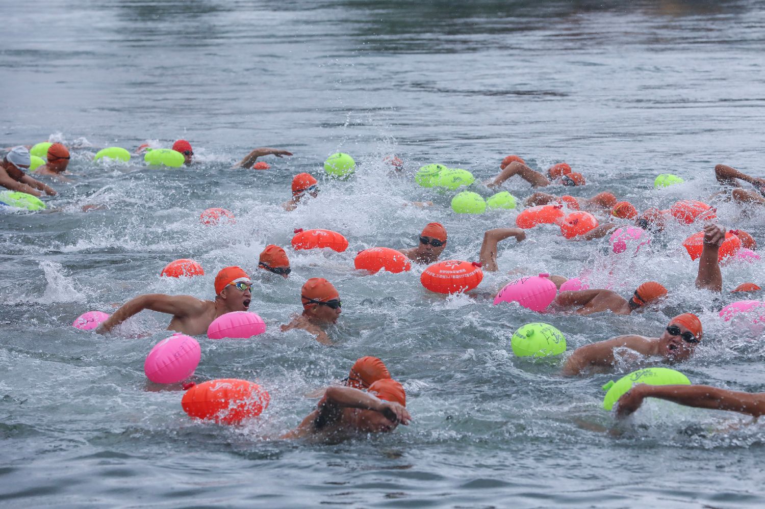 7月27日,参赛选手们在参加“夏日冬泳”。据悉,从新安江大坝坝底喷涌而出的江水水温常年保持在17℃左右,每年吸引着来自全国各地的冬泳爱好者慕名前来畅游体验。(图片来源:本文图片均据新华社)