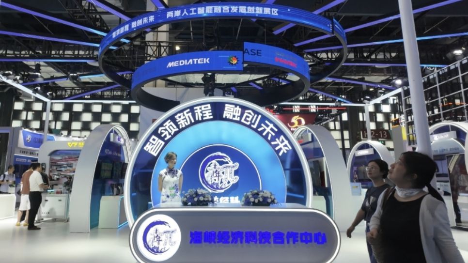 7月26日至28日,海峡经济科技合作中心主办的两岸人工智能融合发展创新展区亮相2025世界人工智能大会。联发科、日月光、英业达等10家台湾企业首次组团参展。(图片来源:中新社)