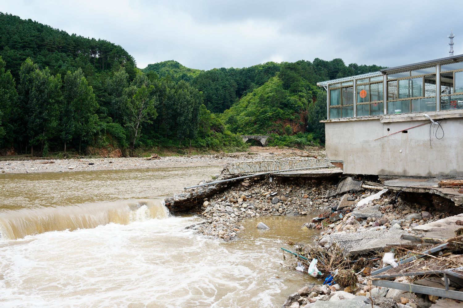 7月28日,琉璃庙镇偏道子村一桥梁受损。