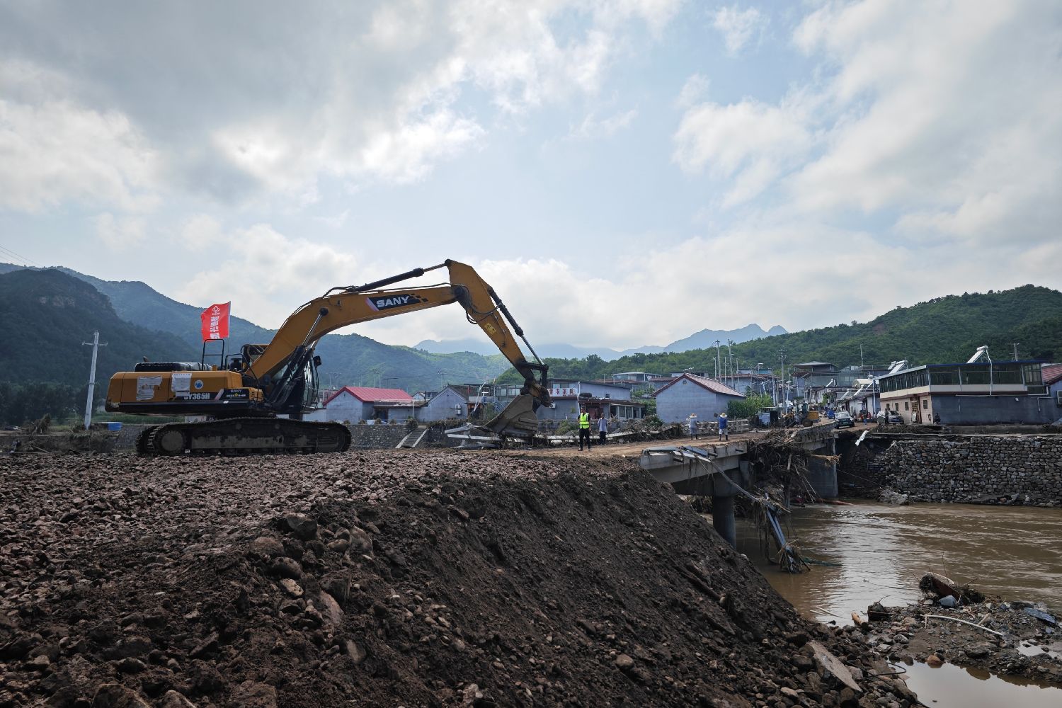7月28日,受损坏的老公营大桥已被临时修复。