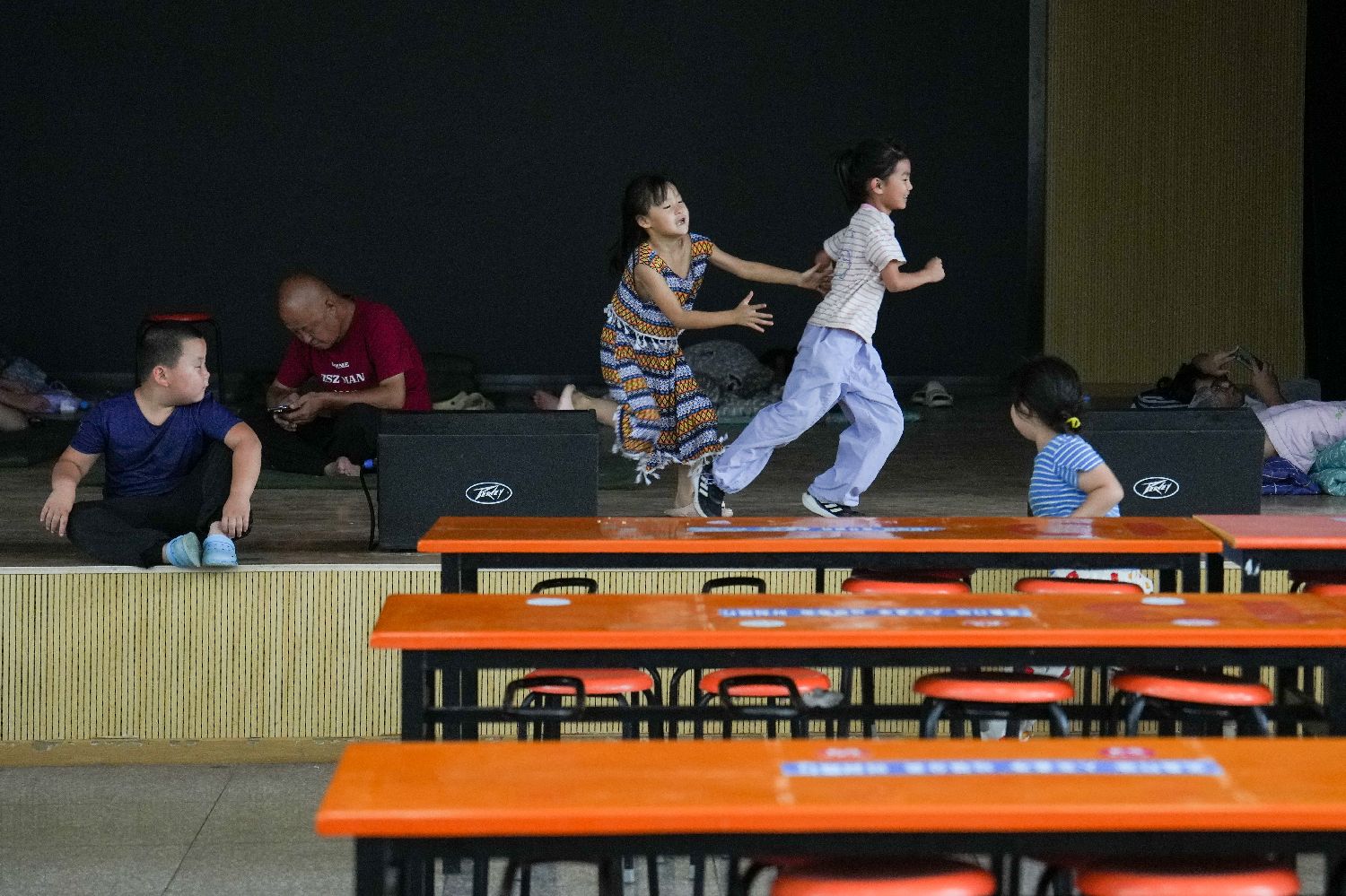 7月29日,在北京市密云区太师庄中学居民安置点,安置在此的小朋友在玩耍。