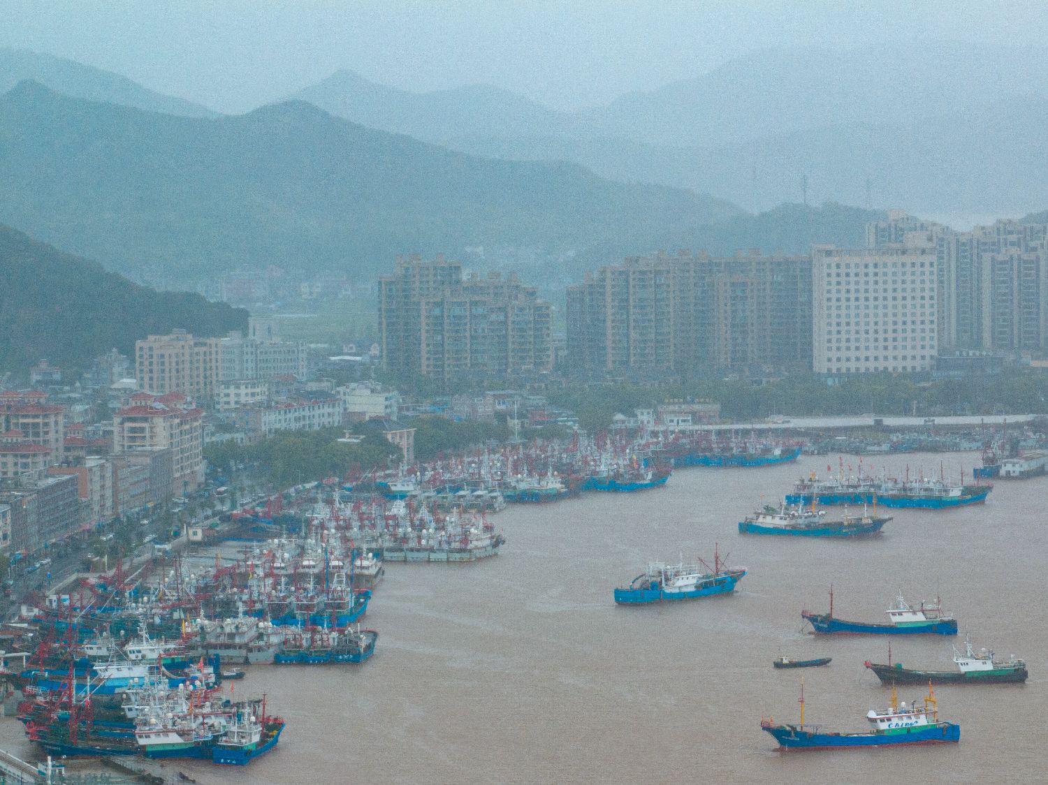 受其影响,浙江省宁波市象山县出现强降雨,当地船只归港避风,轮渡汽渡停航。图为7月29日,受台风“竹节草”影响,船只驶入宁波市象山县石浦港避风。
