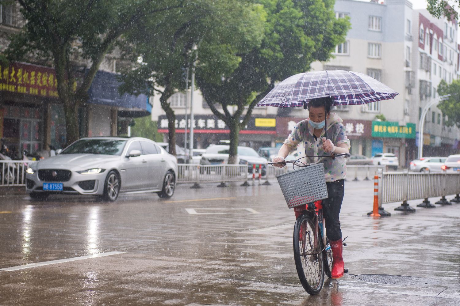 7月29日,在宁波市象山县,市民冒着风雨出行。