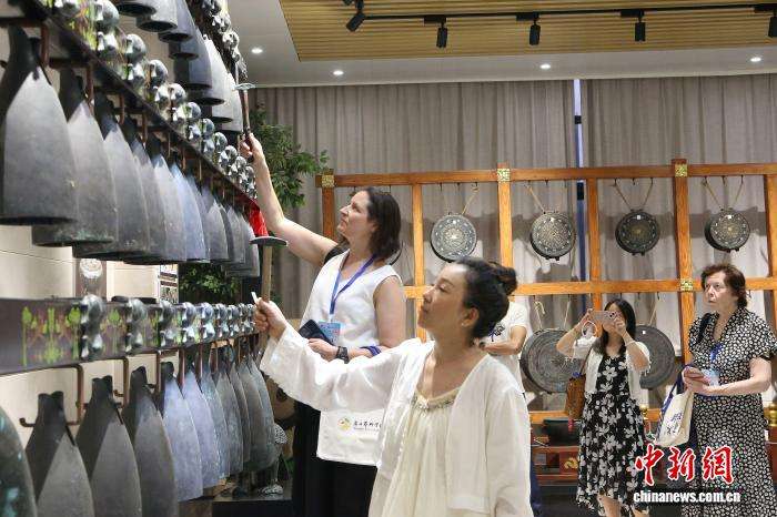7月28日,“秀甲天下 壮美广西”澳大利亚文化人士访问团一行11人抵达中国广西南宁参访广西民族音乐博物馆。该馆是广西首家专题性音乐博物馆、全国少数民族地区首家民族音乐博物馆以及全国陈列东南亚传统乐器最多的博物馆。访问团成员在此近距离接触广西各民族的特色乐器,并感受东南亚乐器文化。