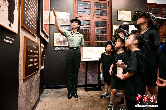 图为小孩子们在武警官兵的带领下走进红岩革命纪念馆参观。