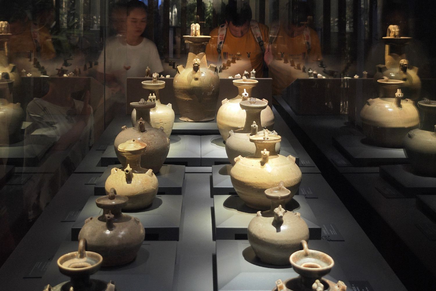 7月30日,观众在南京六朝博物馆内参观展陈文物。