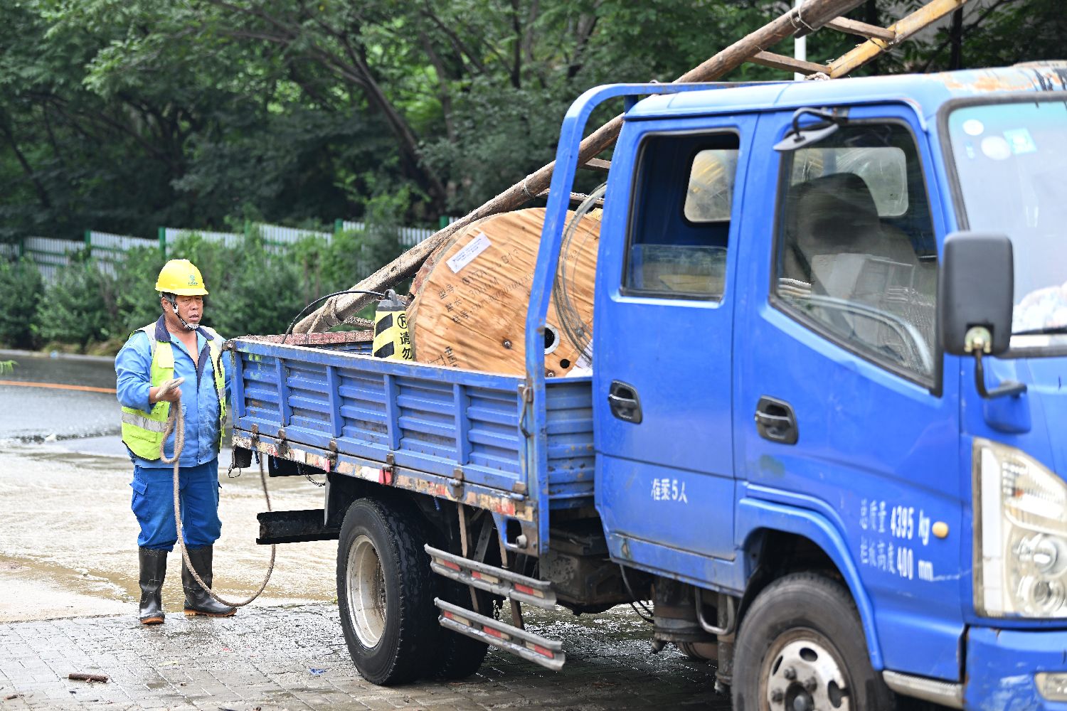7月29日,抢修人员在天津市蓟州区下营镇常州村准备修复光缆。(图片来源:本文图片均据新华社)