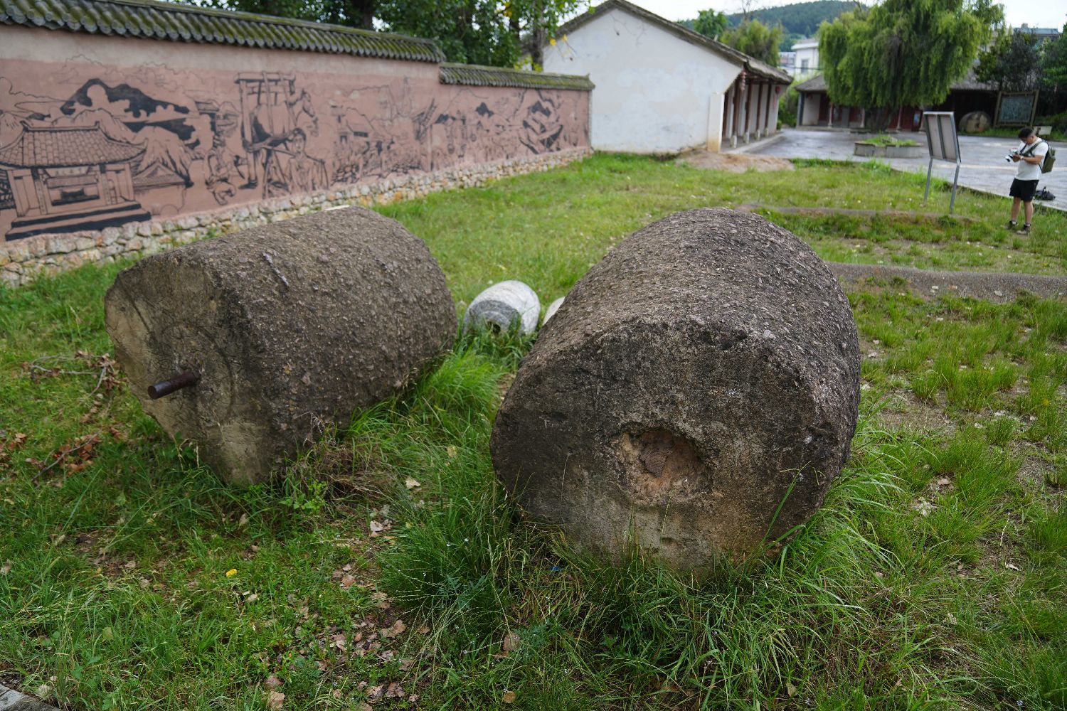 7月30日,云南驿堆放着抗战时修筑机场的石碾子。(图片来源:中新社)