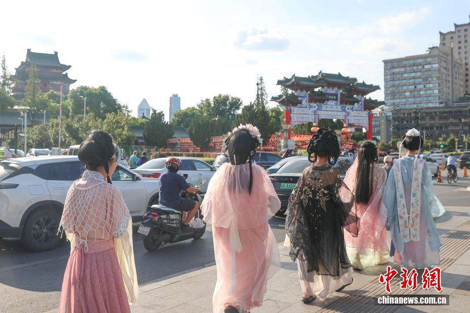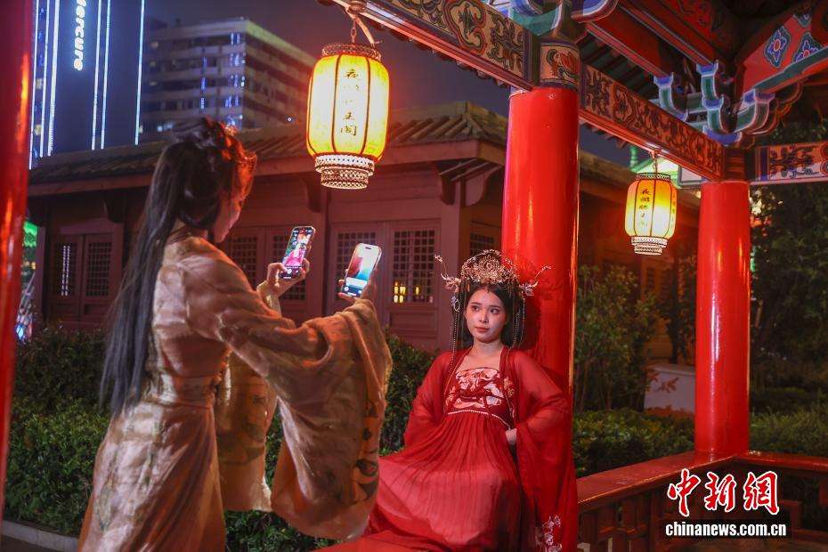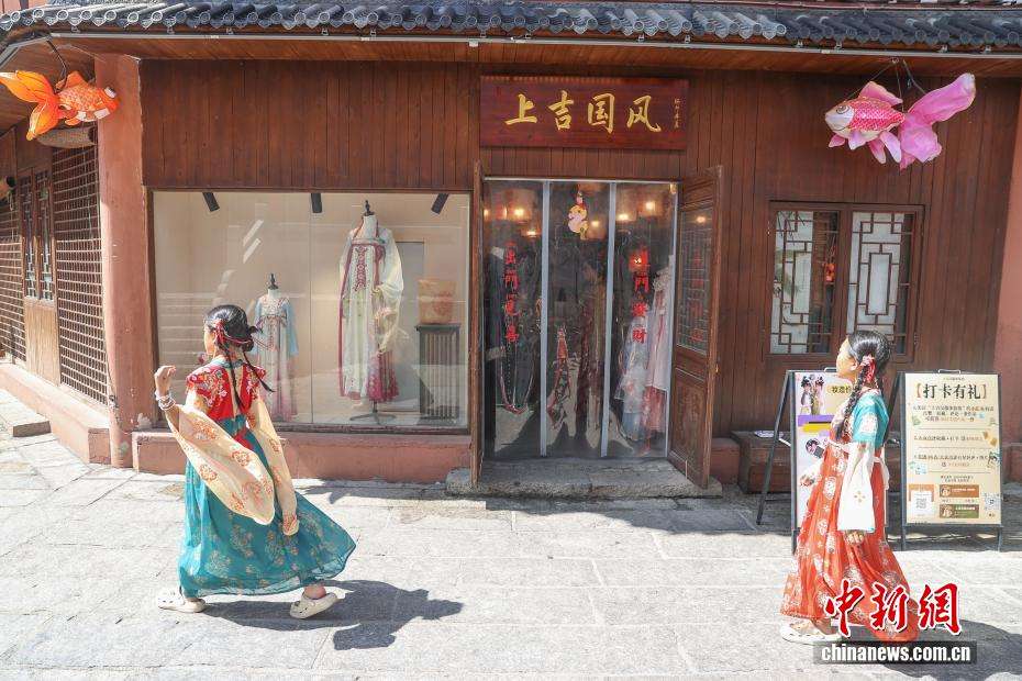 7月29日,江西南昌,身着古装的游客在万寿宫历史文化街区内拍照打卡。(图片来源:本文图片均来自中新网)