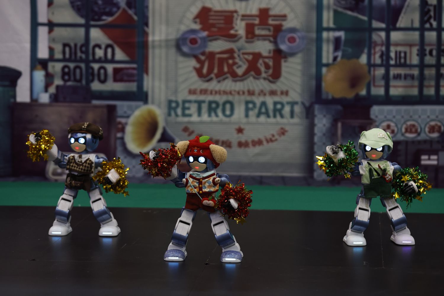 来自北京信息科技大学的“扭动比斯兔队”有5名成员,这些人形机器人服饰各不相同,有的身着“新中式”,有的主打“学院风”。团队成员高瑜辉介绍,这些衣服都是同学们手工缝制的,旨在与舞蹈中的传统文化等元素更好融合。