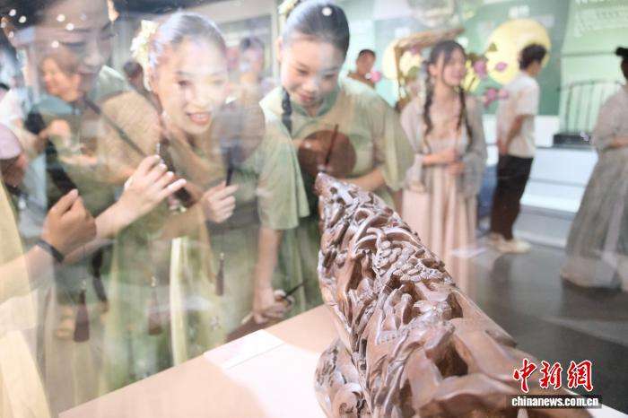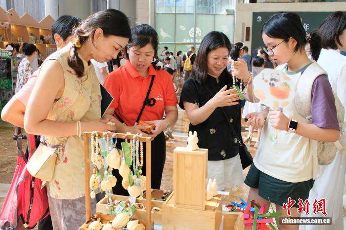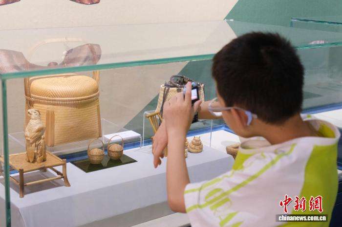 8月3日,孩童在竹制工艺品前驻足细看。(图片来源:本文图片均来自中新网)