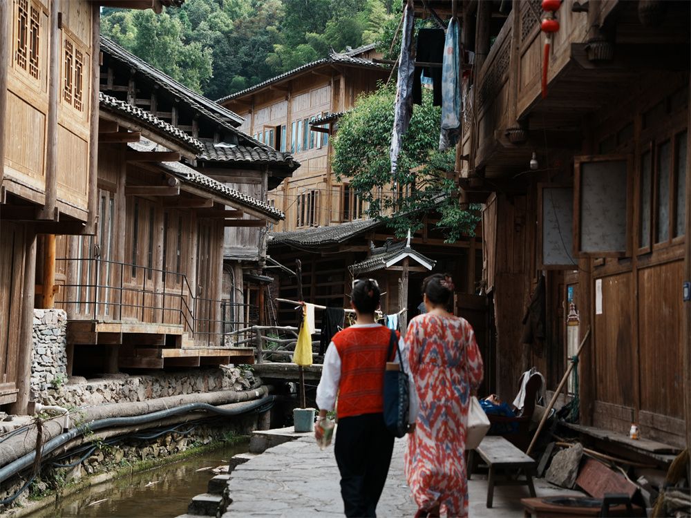 如今,黄岗侗寨的旅游业态日益丰富,除了特色民宿和侗家餐饮,还新添了咖啡店和旅拍店。鼓楼旁、木窗前,常能看到游客端着咖啡,悠闲地看溪边鸭子戏水,或身着租借的侗族服饰拍照,让镜头定格下自己与八百年侗寨相遇的瞬间。