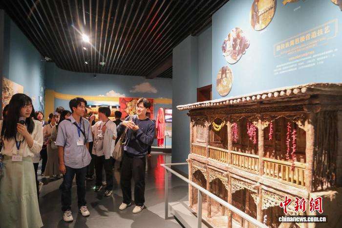 图为学生了解中国国家级非物质文化遗产代表性项目——撒拉族篱笆楼营造技艺。