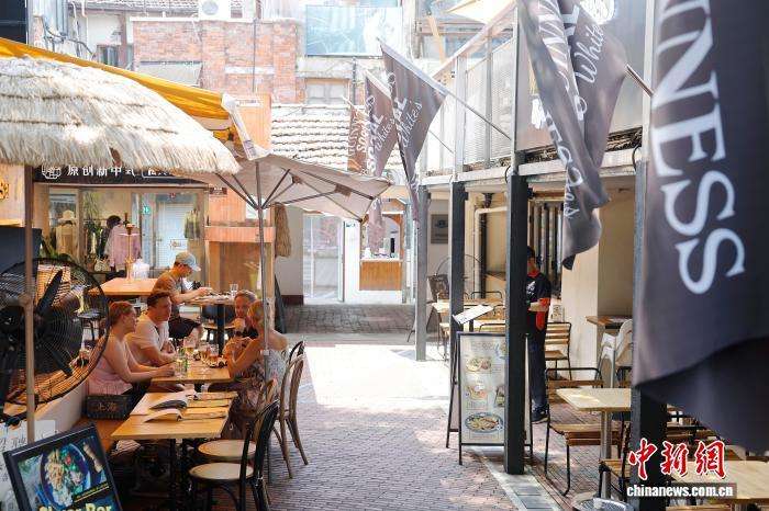 8月3日,外国游客在田子坊弄堂内享受美食。(图片来源:本文图片均来自中新网)