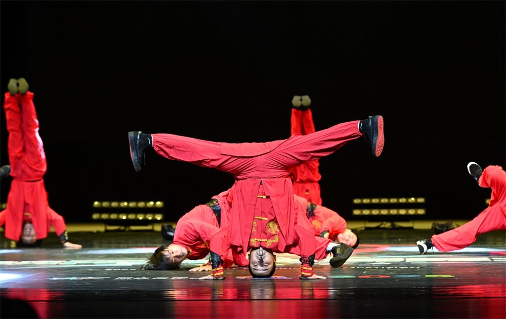 8月4日,2025海峡两岸(福州)霹雳舞大赛总决赛在福建省福清市举行,图为功夫街舞表演。(图片来源:中新社)