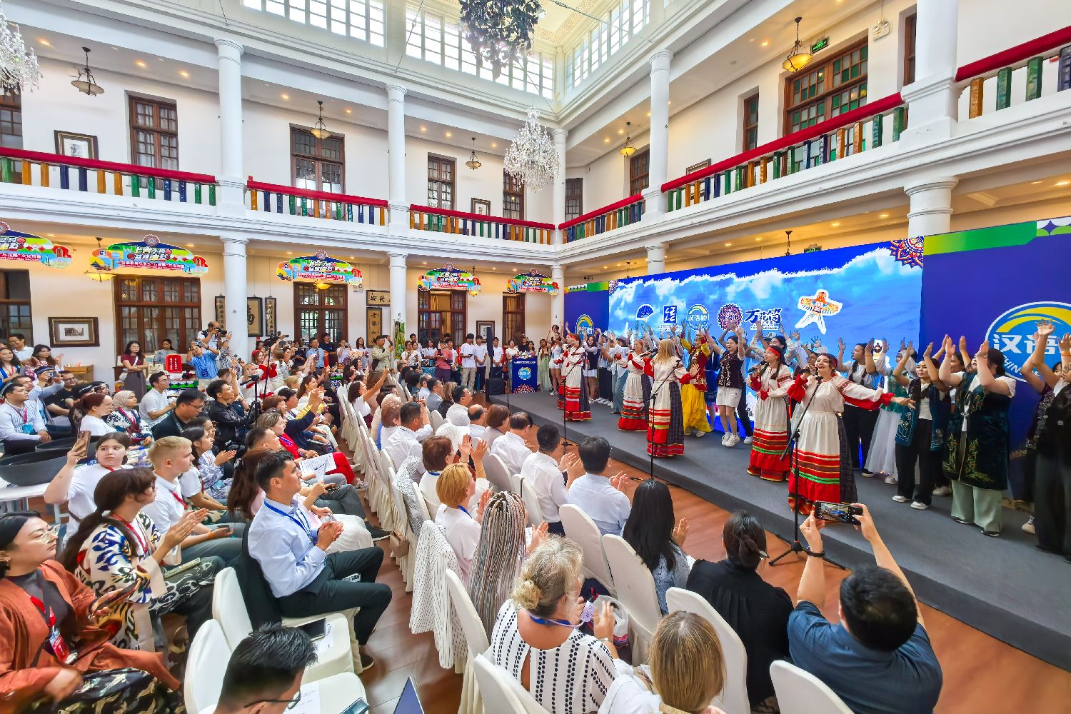 8月6日,来自上合组织国家青年学生观看中国京剧展演。当日,“上合之约·丝路津彩”上合国家青年学生“万花筒”文化市集在天津拉开帷幕。(图片来源:本文图片均自中新社)