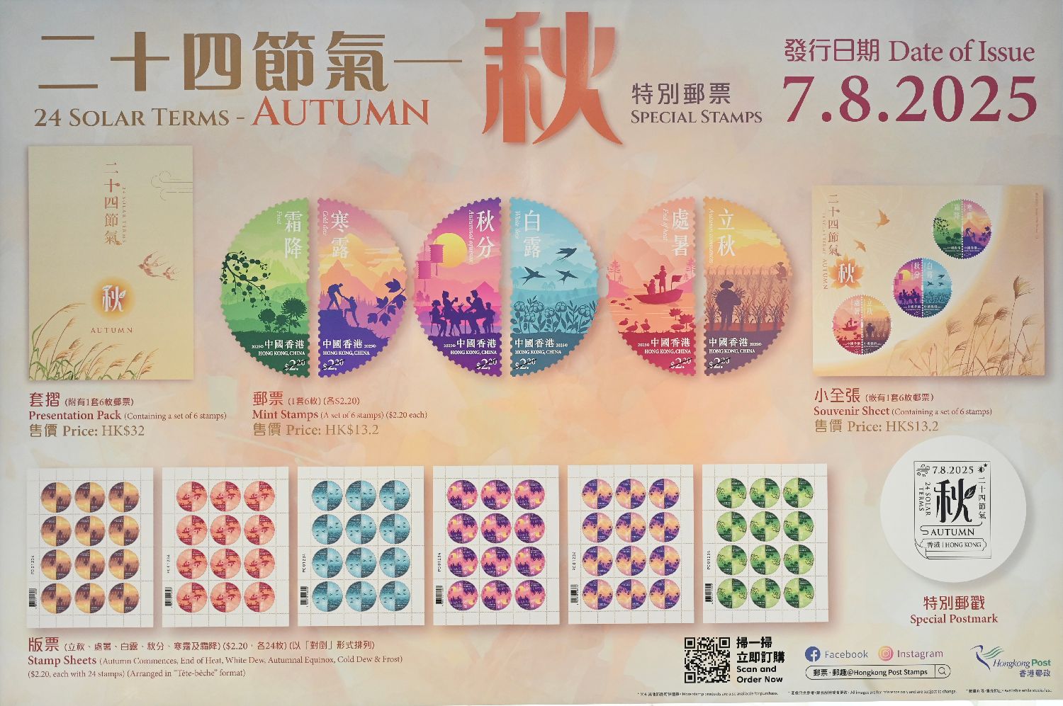 香港邮政发行“二十四节气—秋”特别邮票